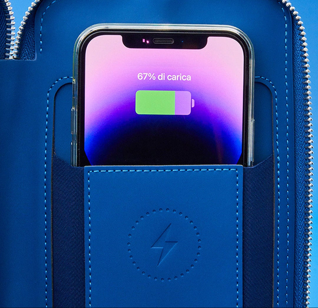 Never worry about running out of battery again! Our Smart Bag carries your essentials and lets you charge your phone anytime with its integrated wireless system.