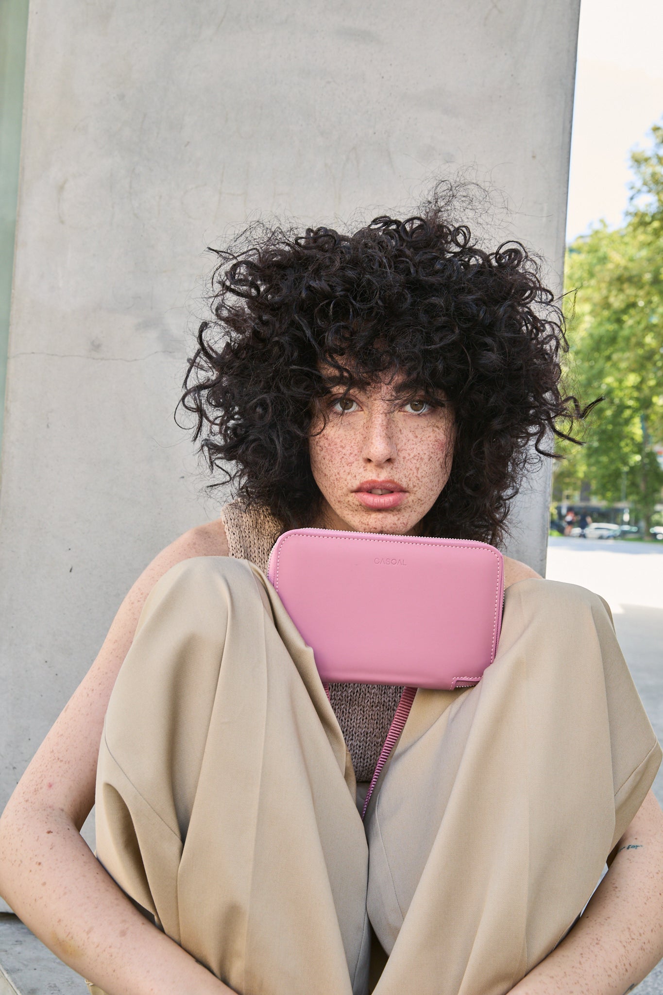 The idea of the circle originates from my surname, specifically from the "O" in CASOAL. The circle symbolizes the beginning of everything: the sun, the earth, the moon, and all the things that nourish our hearts with a beginning and an end, and everything eventually comes full circle. It is a geometric shape connected to life and expands in different ways: in creativity, in spiritual action, something that comes from our soul and cannot be explained in words. The circle gives me a sense of security and strength. I wanted to develop this idea and represent it with two transverse lines to identify it with my brand, a small rounded bag supported by two rings on each side for the right balance, simplifying its appearance for our daily lives, making it practical and comfortable.
